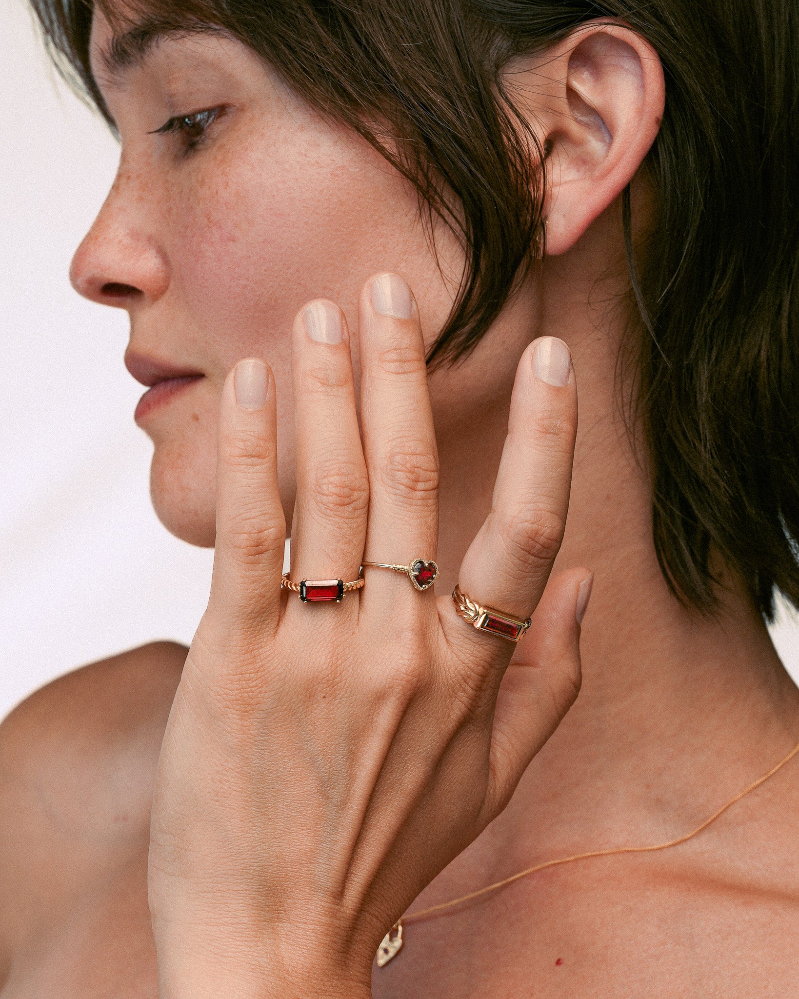 Infused with the deep, ancient fire of Garnet, this collection stirs a quiet strength within. A stone long revered for protection, passion, and grounding.