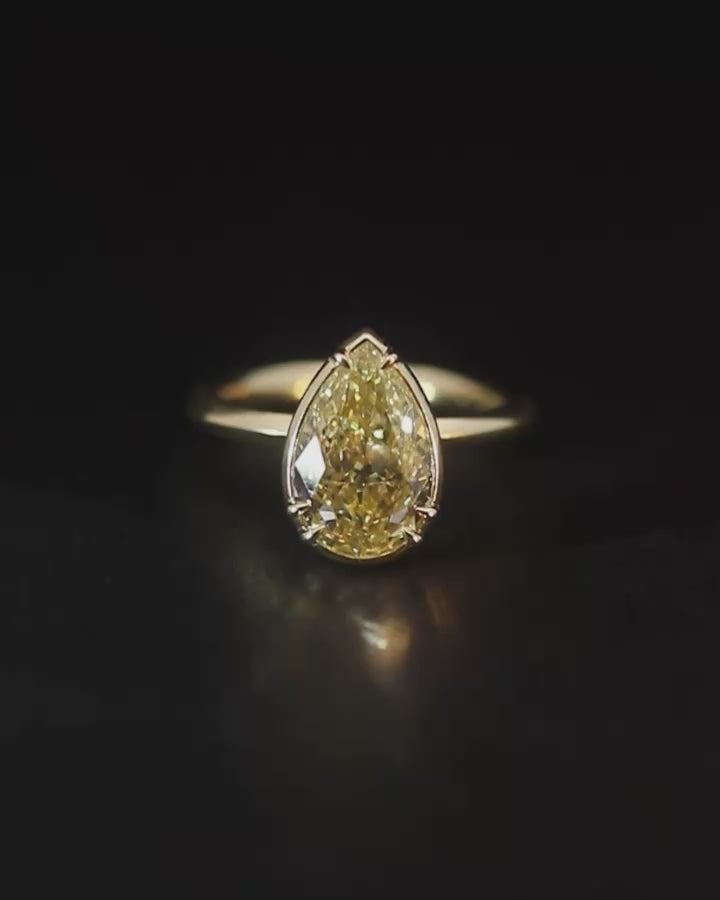 A contemporary solitaire ring inspired by nature, the Azalea Ring showcases an approx 3.0ct Pear Cut Champagne Diamond. The diamond captures light from every angle, echoing the enduring beauty of the azalea flower.