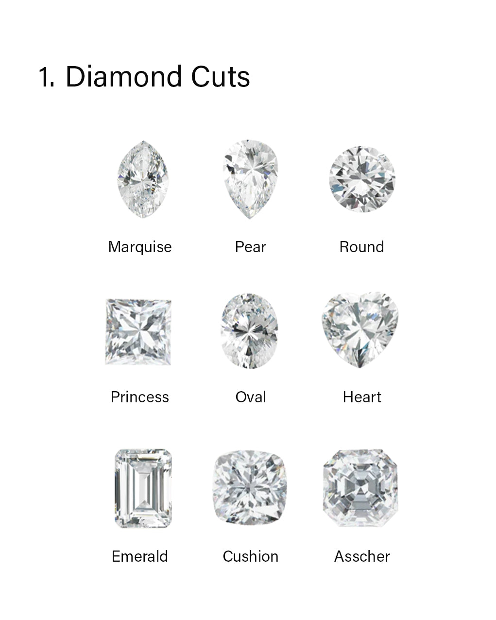 The cut of a diamond isn’t just about its shape - it’s the craftsmanship behind its facets, symmetry, and polish that gives it sparkle and life. Each style, from the classic Round Brilliant to the refined Emerald, the edgy Princess, or the timeless Asscher, offers a unique light dance and personality. Explore the distinct beauty of each cut and discover which silhouette captures your heart.